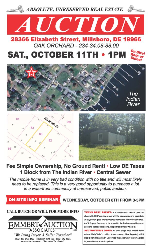 Emmert Auction Associates has been the pacesetter in the Real Estate Auction World throughout Delmarva for well over 30 years. As the leading Auction and Appraisal company on Delmarva, Emmert Auction Associates provides clients with quick and highly profitable results. Based in Rehoboth Beach, Emmert Auction Associates is a family-owned and operated full-service Auction company that handles everything from personal property and estate sales to residential, commercial and land auctions of all sizes. Emmert Auction Associates is built on expertise, integrity and a commitment to excellence.
