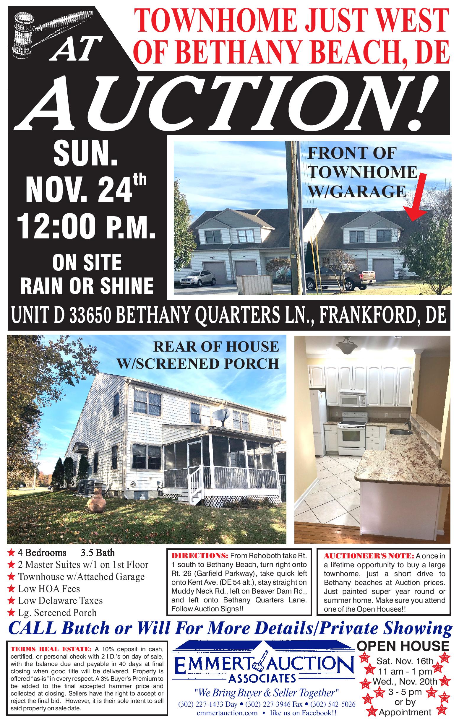 Emmert Auction Associates has been the pacesetter in the Real Estate Auction World throughout Delmarva for well over 30 years. As the leading Auction and Appraisal company on Delmarva, Emmert Auction Associates provides clients with quick and highly profitable results. Based in Rehoboth Beach, Emmert Auction Associates is a family-owned and operated full-service Auction company that handles everything from personal property and estate sales to residential, commercial and land auctions of all sizes. Emmert Auction Associates is built on expertise, integrity and a commitment to excellence.